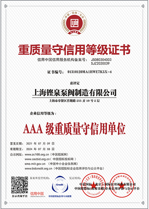 上海аⅴ资源中文在线天堂泵閥製造有限(xiàn)公司是集科研、生產及銷售於一(yī)體(tǐ)的泵業製造廠家。榮譽資質· honor